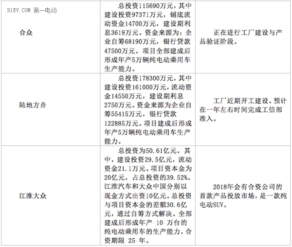此外,奇瑞新能源方面表示,一期項(xiàng)目已經(jīng)完工,大概8月左右能夠進(jìn)入工信部準(zhǔn)入;江蘇敏安指出,按照國發(fā)委批復(fù)文內(nèi)容,已全面進(jìn)入投入廠房建設(shè)和產(chǎn)品開發(fā),目標(biāo)2018年底建成廠房,生產(chǎn)自動(dòng)化水平達(dá)到90%以上,產(chǎn)品同年下線,2019年第一季度上市;知豆自3月發(fā)改委項(xiàng)目核準(zhǔn)之后,已經(jīng)全力推進(jìn)項(xiàng)目建設(shè),計(jì)劃年內(nèi)申請(qǐng)并通過審核,列入《道路機(jī)動(dòng)車輛生產(chǎn)企業(yè)及產(chǎn)品公告》。