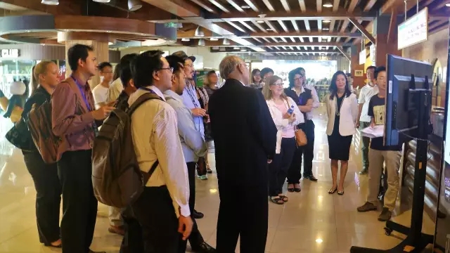 ▲國(guó)際標(biāo)準(zhǔn)化組織與APEC研討會(huì)代表團(tuán)參觀(guān)智能微電網(wǎng)整體解決方案中的屋頂光伏電站