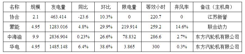 各風電場5月份發(fā)電量 單位:萬千瓦、萬千瓦時