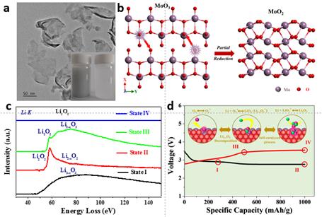 圖3三氧化鉬納米片表面氧空位位點(diǎn)放電產(chǎn)物自催化分解反應(yīng)機(jī)理