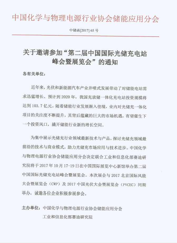 關于邀請參加“第二屆中國國際光儲充電站峰會暨展覽會”的通知
