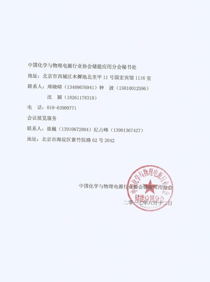 中國化學與物理電源行業(yè)協(xié)會儲能應用分會秘書處