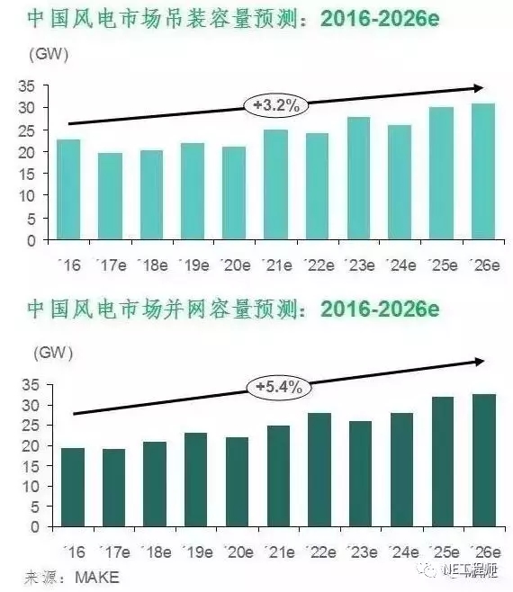 MAKE預(yù)計(jì),2017年甘肅與吉林將沒(méi)有新增并網(wǎng)容量,內(nèi)蒙、黑龍江與寧夏各省的新增并網(wǎng)容量將不足300MW;盡管海上吊裝容量預(yù)測(cè)上調(diào)194MW,仍無(wú)法抵消西北地區(qū)新增容量的大幅減少。