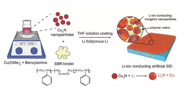 涂層和反應是在負極表面上建立人造界面的兩種主要方法,但兩者都具有一些優(yōu)點和缺點。最近,崔屹團隊制作的人造SEI層同時顯示出了高鋰離子傳導性、機械強度和柔韌性。