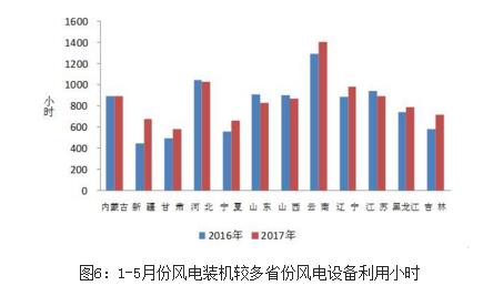 分類型看,1-5月份,全國水電設(shè)備平均利用小時為1161小時,同比降低134小時;在水電裝機容量超過1000萬千瓦的7個省份中,除云南外,其余省份水電設(shè)備平均利用小時同比均有不同程度降低,其中貴州、廣西和湖南降幅超過300小時,同比分別降低605、534和388小時。全國火電設(shè)備平均利用小時為1677小時,同比增加42小時;分省份看,全國共有10個省份火電利用小時數(shù)超過全國平均水平,其中,江蘇、河北和山東火電設(shè)備平均利用小時數(shù)超過2000小時,而云南和西藏火電利用小時數(shù)分別為543和54小時;與上年同期相比,全國共有20個省份火電利用小時數(shù)同比增加,其中湖南和江西同比增加超過200小時,福建、廣東、陜西、青海、浙江、寧夏和貴州同比增加超過100小時;而海南、北京和重慶同比降低超過100小時,分別降低239、132和105小時。全國核電設(shè)備平均利用小時2816小時,同比增加62小時。全國風電設(shè)備平均利用小時852小時,同比增加59小時。