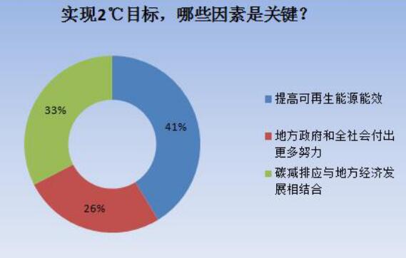 還有33%的受訪人群認為,碳減排應與地方經(jīng)濟發(fā)展相結(jié)合是實現(xiàn)2℃目標的關(guān)鍵因素。