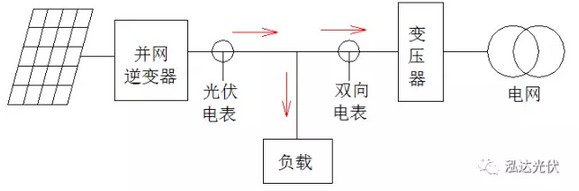 分布式光伏,自發(fā)自用,余量上網,一般要裝兩塊電表,逆變器出來裝一塊電表,記錄光伏發(fā)電,用戶側并網點裝一塊雙向電表,用來記錄光伏向電網送電以及用戶向電網買電。