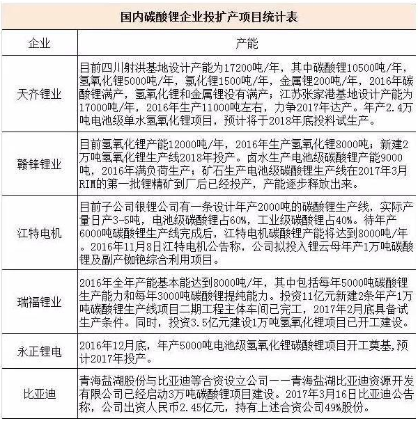 另附鋰漲價(jià)受益的碳酸鋰擴(kuò)大產(chǎn)能企業(yè)