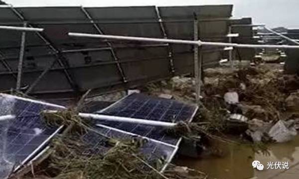 再看暴雨。最近暴雨頻發(fā),很多地面、戶用光伏電站為此遭罪,損失嚴(yán)重。歸結(jié)原因有三方面:第一方面光伏電站設(shè)計時候沒有考慮雨水天氣對光伏電站影響,就出現(xiàn)了一些電站建設(shè)在低洼區(qū)域、河岸等易被洪水“侵襲”的區(qū)域;第二方面,光伏系統(tǒng)樁基不穩(wěn),特別是支架與地面接觸部分,在雨水長期浸泡過程中,樁基出現(xiàn)松動導(dǎo)致電站傾斜、倒掉;第三方面,光伏電站周邊排水系統(tǒng)存在欠缺。暴雨天氣,排水系統(tǒng)不完善,導(dǎo)致積水嚴(yán)重,可能會出現(xiàn)光伏逆變器長時間浸泡于水中的問題,致使逆變器內(nèi)部出現(xiàn)短路,光伏電站癱瘓。