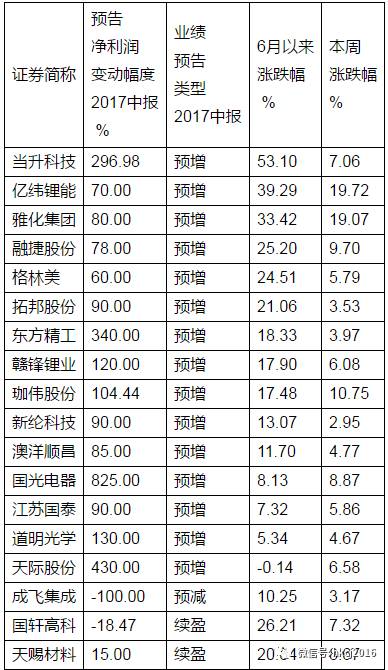 據(jù)wind數(shù)據(jù),鋰電池概念板塊相關(guān)個股達(dá)到55只,其中有35家公司已發(fā)布中報(bào)業(yè)績預(yù)告。這些公布預(yù)告的公司中,21家預(yù)計(jì)凈利潤實(shí)現(xiàn)同比增長,其中預(yù)增超100%的公司有7家,分別為國光電器、天際股份、東方精工、當(dāng)升科技、道明光學(xué)、贛鋒鋰業(yè)、珈偉股份。(見附表2)