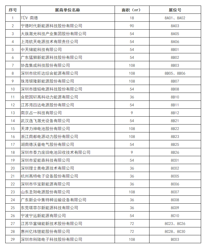 截止到2017年7月12日,按展位號排列(排名不分先后):