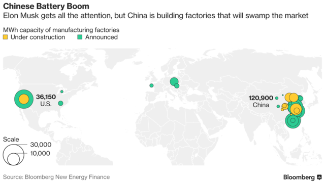 彭博新能源財(cái)經(jīng)還預(yù)測(cè),中國(guó)在全球鋰離子電池的市場(chǎng)優(yōu)勢(shì)將會(huì)不斷強(qiáng)化,2017年市場(chǎng)份額將達(dá)到55%,2021年將達(dá)到全球市場(chǎng)份額的65%。