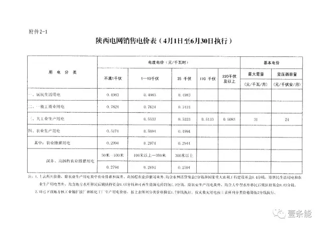 2.陜西電網(wǎng)銷售電價表(4月1日至6月30日執(zhí)行)