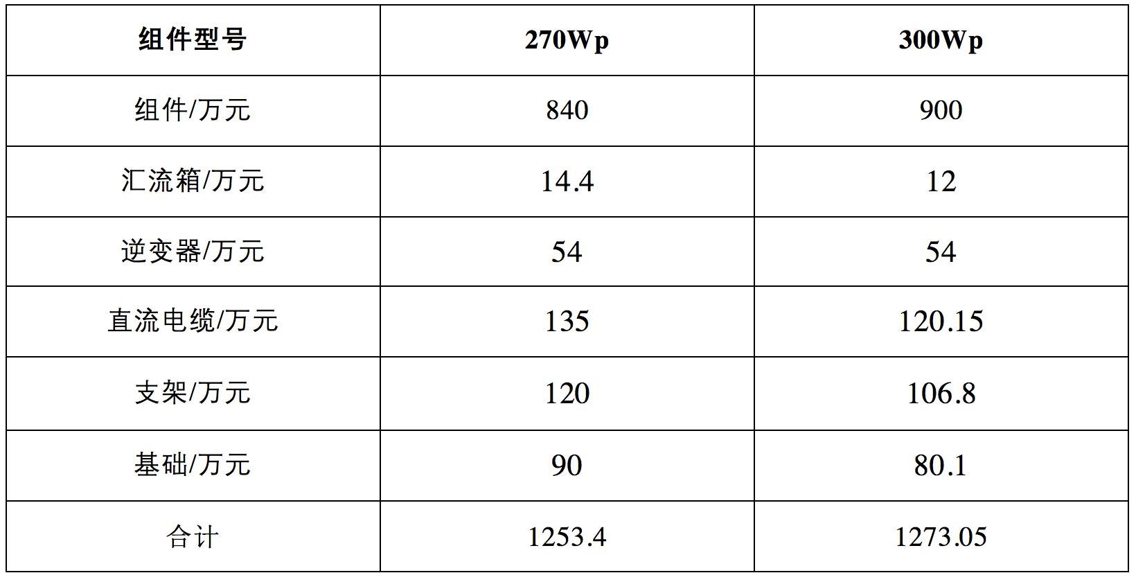 3MW的項(xiàng)目采用270Wp組件和300Wp組件的初始投資不相同的部分進(jìn)行簡(jiǎn)單對(duì)比,如下表所示。