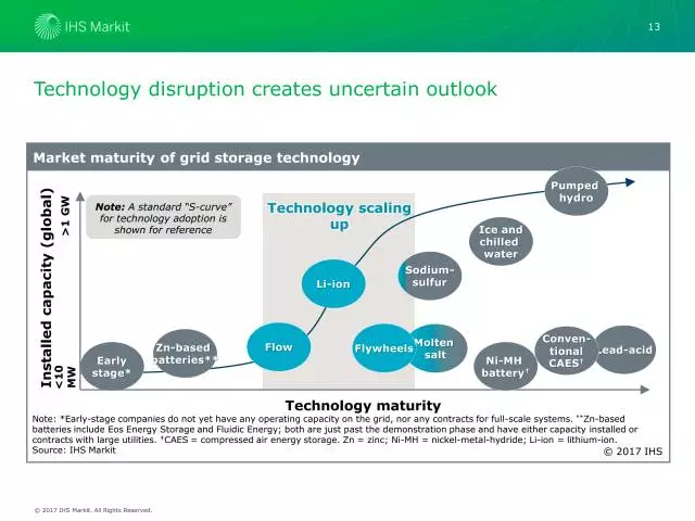 儲能不同技術(shù)路線競爭使得未來展望不甚確定