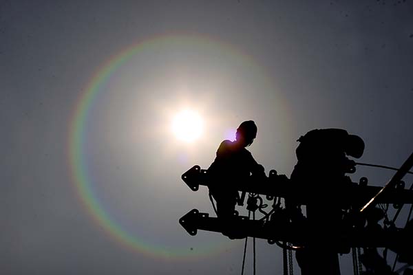 電力工人在高溫下工作。視覺(jué)中國(guó) 資料