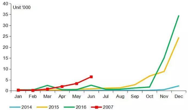 不過(guò),無(wú)論如何,記者分析認(rèn)為,2017年的純電動(dòng)物流車(chē)市場(chǎng),在上述三個(gè)利好因素的助推下,再攀新高幾成定局,全年產(chǎn)銷(xiāo)量有望達(dá)到8萬(wàn)-10萬(wàn)輛,同比增長(zhǎng)32%-65%。