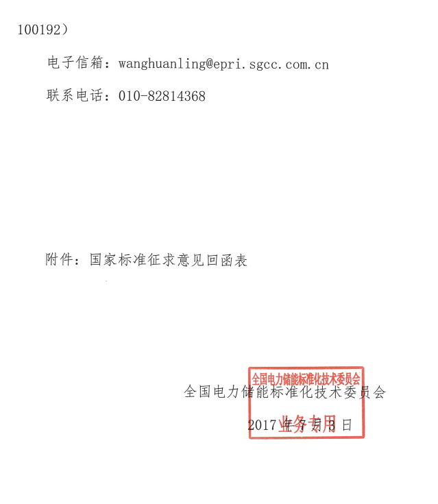 根據(jù)國家標(biāo)準(zhǔn)化管理委員會下達(dá)的 2015 年第二批國家 標(biāo)準(zhǔn)制修訂計(jì)劃(國標(biāo)委綜合[2015]52 號)安排,由我標(biāo)委 會組織、中國電力科學(xué)研究院等單位負(fù)責(zé)編制的國家標(biāo)準(zhǔn) 《電力儲能用鉛炭電池》已完成征求意見稿,現(xiàn)征求意見, 請登陸電力標(biāo)準(zhǔn)化網(wǎng)站(網(wǎng)址:http://dls.cec.org.cn/) 標(biāo)準(zhǔn)意見征求專欄下載相關(guān)資料。請你們結(jié)合工程實(shí)踐,提 出具體修改意見或建議,并請于 2017 年 7 月 25 日前,將意 見通過信函或電子郵件方式反饋至標(biāo)準(zhǔn)編制組。
