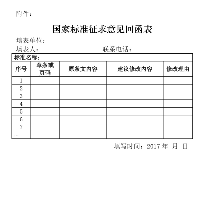 附件:國家標(biāo)準(zhǔn)征求意見回函表