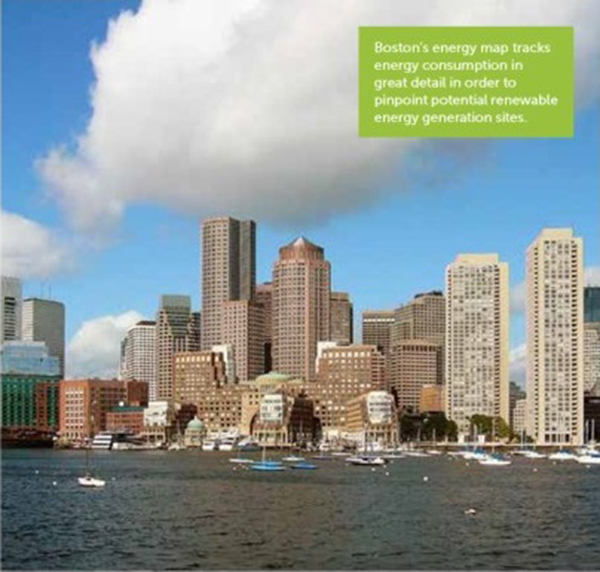 波士頓市利用能源地圖,細(xì)致追蹤能耗,識(shí)別出可利用可再生能源發(fā)電的地點(diǎn)