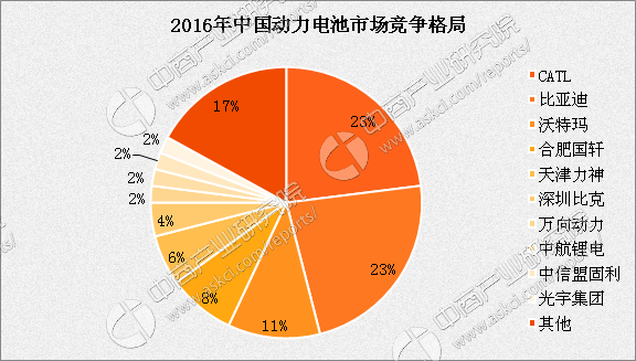 值得關(guān)注的是,我國動力電池市場正處于高速發(fā)展階段,企業(yè)處于瘋狂擴張時期,雖然目前前三企業(yè)占比較大,數(shù)據(jù)顯示2016年中國動力電池市場規(guī)模為645億元,其中,CATL和比亞迪市場占比均為23%,另外沃特瑪市場占比為11%,三大企業(yè)市場占比超50%。但隨著企業(yè)擴張完成,未來前十格局將被打破,行業(yè)高速洗牌期即將來臨。