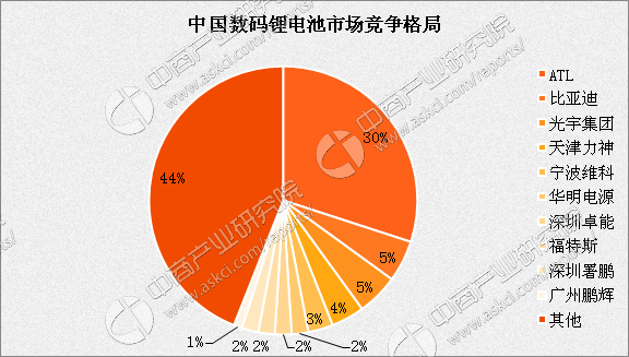 值得關(guān)注的是,目前我國數(shù)碼鋰電電池趨于飽和;現(xiàn)階段國內(nèi)高端型數(shù)碼電池呈現(xiàn)大者恒大趨勢;目前數(shù)碼電芯市場總體平均毛利以下降至10%-15%。另外大企業(yè)不斷擠壓,中小企業(yè)面臨被并購和倒閉風(fēng)險。數(shù)據(jù)顯示2016年中國數(shù)碼鋰電池市場規(guī)模483億元,其中ATL占比30%,其他企業(yè)占比44%。可見,目前我國數(shù)碼鋰電池仍是一家獨大的局面。