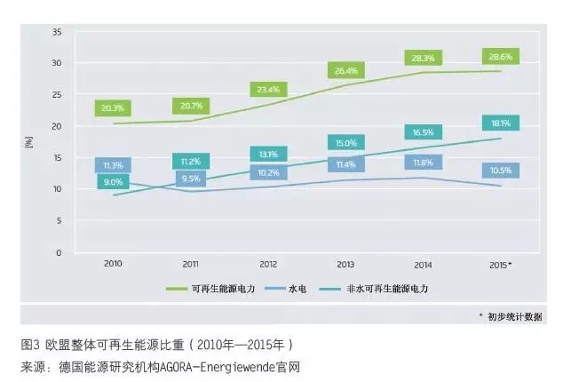(2)2005 年—2015 年十年間,美國的風(fēng)電份額從幾乎可以忽略,上升到接近5%。同期, 其總用電量2015 年幾乎回到了2005 年的水平(見圖2)。電力需求已經(jīng)飽和,甚至略微下降。這是風(fēng)光等可再生能源快速在電力結(jié)構(gòu)中擴大份額的機會,而不是障礙。