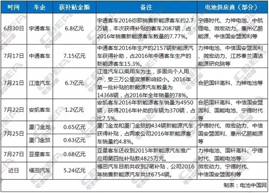 目前,已經(jīng)有數(shù)家車企收到了2016年的補(bǔ)貼款項(xiàng),電池中國網(wǎng)將獲補(bǔ)貼的車企、獲補(bǔ)貼的時(shí)間、補(bǔ)貼金額及新能源汽車的部分供應(yīng)商匯總?cè)缦拢?
