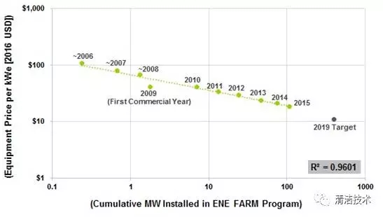根據(jù)Navigant 研究,隨著產(chǎn)量的提升以及經(jīng)濟(jì)規(guī)模的壯大,燃料電池成本呈現(xiàn)逐步下降趨勢。Navigant研究發(fā)現(xiàn)固定式燃料電池的成本下降速度明顯快于風(fēng)能并且與太陽能成本下降速度保持在同一水平。燃料電池微電網(wǎng)的低成本投入將會獲得更快的成本回收周期。