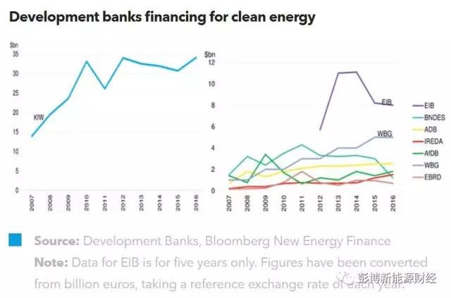 2016年,德國復(fù)興信貸銀行的清潔能源和能源效率投資仍超過全球其他銀行,位居榜首,歐洲投資銀行和世界銀行集團(tuán)則分別名列第二、第三名。