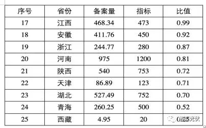 2)大部分地區(qū)的競爭配置>1,即大部分省目前已經(jīng)備案的項目若全部并網(wǎng),就已經(jīng)能達到國家能源局的指標;僅有少數(shù)省份的備案量略低于目標值。