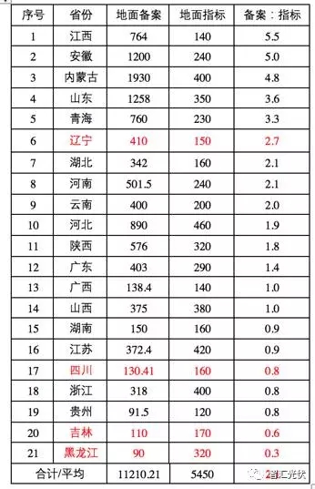 表2:各省光伏的備案量、指標與比值