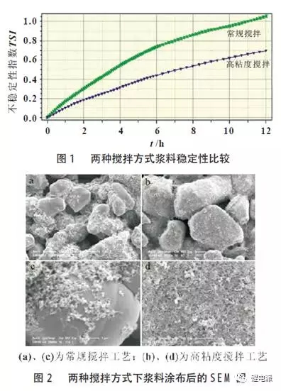 (3)高固含量的漿料穩(wěn)定性更高,部分漿料穩(wěn)定性測試結(jié)果表明(如下圖),常規(guī)攪拌的TSI(不穩(wěn)定性指數(shù))1.05要高于高粘度攪拌工藝TSI值0.75,所以高粘度攪拌工藝所獲得的漿料穩(wěn)定性要優(yōu)于常規(guī)攪拌工藝。但是高固含量的漿料也會影響其流動性,非常挑戰(zhàn)涂布工序的設(shè)備和技術(shù)人員。