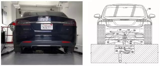 今年 5 月,特斯拉一份充電專利被曝光:特斯拉在電池組下方設(shè)計了一個充電口,車停在車位上之后,下方的自動充電裝置會把充電插頭自動插入充電口。這套自動充電裝置自帶冷卻系統(tǒng),加強散熱可以滿足更高的充電功率。