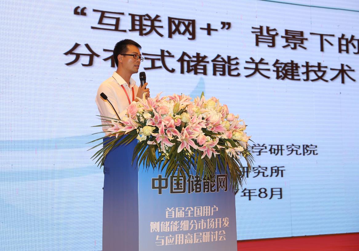 中國(guó)儲(chǔ)能網(wǎng)訊:8月25-26日,首屆全國(guó)用戶側(cè)儲(chǔ)能細(xì)分市場(chǎng)開發(fā)與應(yīng)用高層研討會(huì)在江蘇無(wú)錫太湖飯店召開。會(huì)議由江蘇省電機(jī)工程學(xué)會(huì)、國(guó)網(wǎng)江蘇省電力公司電力科學(xué)研究院、全國(guó)微電網(wǎng)與分布式電源并網(wǎng)標(biāo)準(zhǔn)化技術(shù)委員會(huì)、中國(guó)化學(xué)與物理電源行業(yè)協(xié)會(huì)儲(chǔ)能應(yīng)用分會(huì)聯(lián)合主辦。會(huì)議吸引了國(guó)內(nèi)近400位學(xué)術(shù)和行業(yè)專家及企業(yè)高層代表參會(huì)。中國(guó)電科院配電研究所徐毅虎在會(huì)議上,就“‘互聯(lián)網(wǎng)’+背景下的分布式儲(chǔ)能關(guān)鍵技術(shù)”發(fā)表演講。