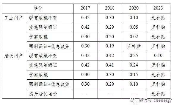 如果2018年能夠推出綠色證書強制交易,考慮利用三年左右的時間,通過適宜的政策設(shè)計,使綠色證書的價格達到0.05元/千瓦時左右,到2023年再達到0.1元/千瓦時左右,則預(yù)期2023年前光伏發(fā)電可以在上網(wǎng)側(cè)實現(xiàn)全面平價。