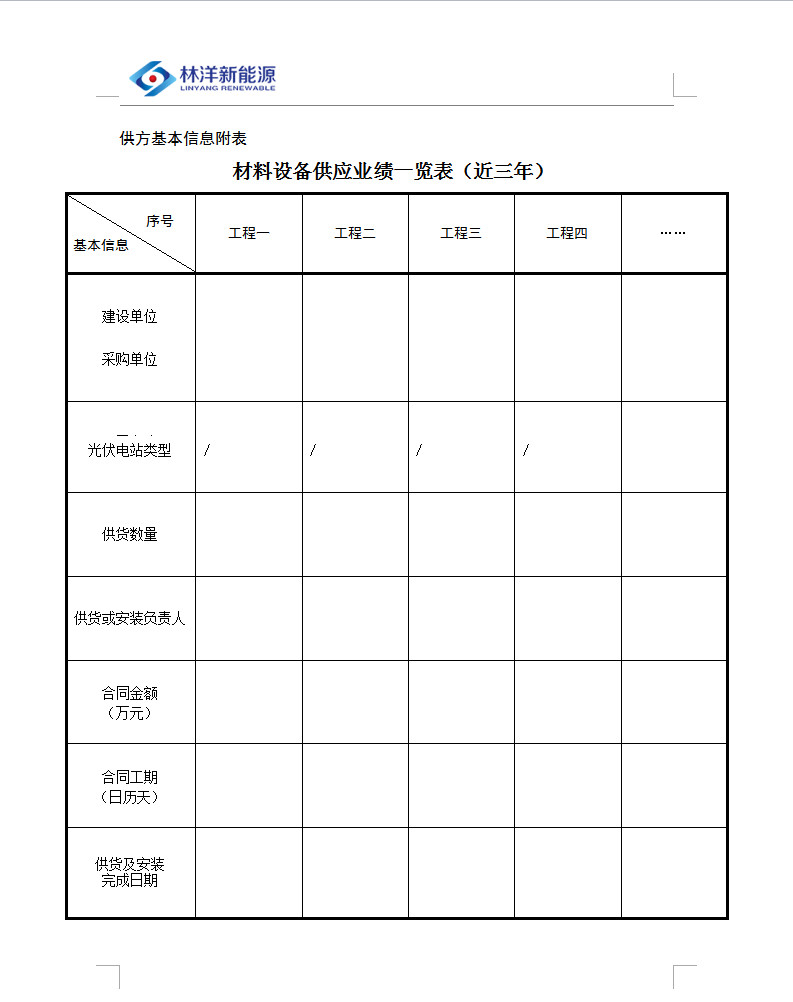 備注:其中《供方基本信息登記表》、《承包工程一覽表(近三年)》按照我司提供表格填寫。