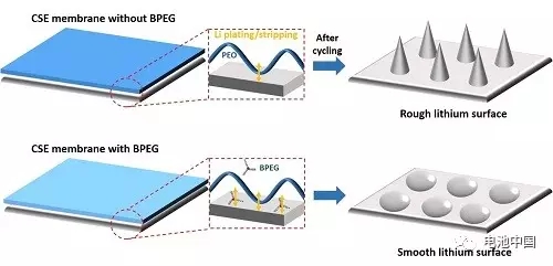 BPEG對鋰的沉積/脫出的影響示意圖