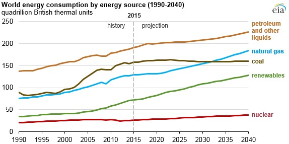 中國儲(chǔ)能網(wǎng)訊:美國能源信息署EIA日前發(fā)布今年國際能源展望(International Energy Outlook)報(bào)告稱,到2040年,全球能源消耗將增長28%,印度和中國將領(lǐng)跑全球能源消耗增長。此外,除煤炭外,對(duì)其他能源需求都呈現(xiàn)上漲態(tài)勢(shì)。