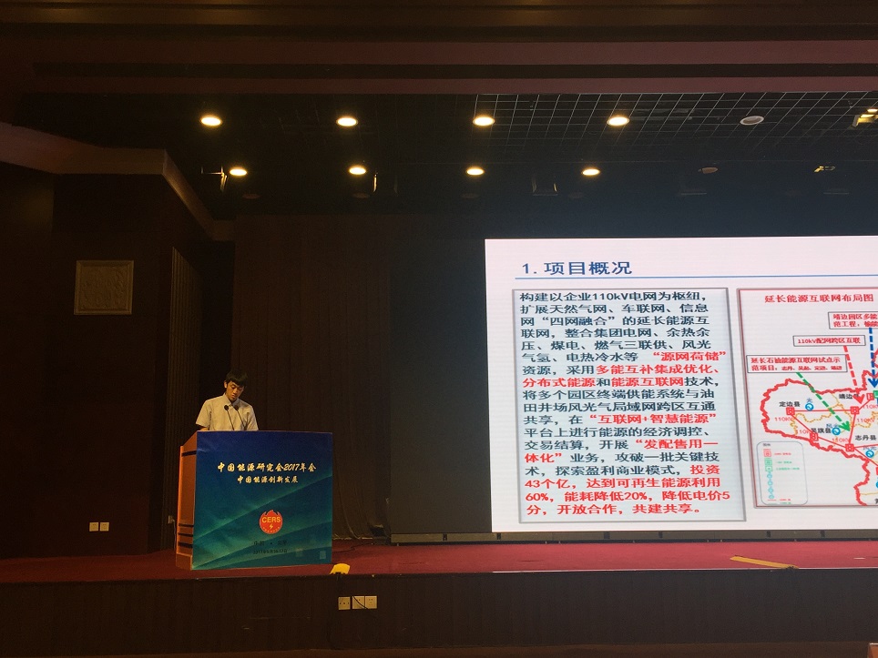 延長石油有限公司的郭莘桐帶來了關(guān)于公司的能源互聯(lián)網(wǎng)試點(diǎn)示范項(xiàng)目——靖邊多能互補(bǔ)集成優(yōu)化示范工程的演講。演講大致分為項(xiàng)目概況、創(chuàng)新與示范、關(guān)鍵技術(shù)支撐以及進(jìn)展和建議四方面。