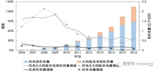 中國風電、太陽能發(fā)電裝機及發(fā)電量增速情況(數(shù)據(jù)來源:中電聯(lián))