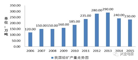 圖6、我國鉛礦產(chǎn)量走勢圖