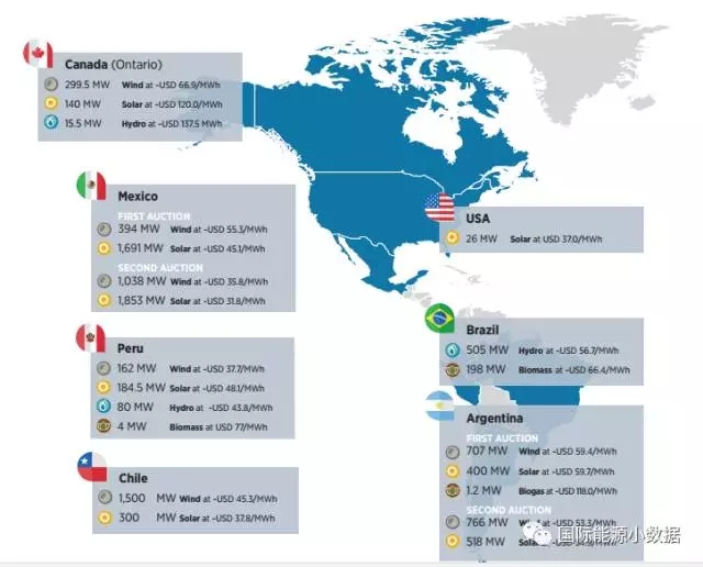 中國儲能網(wǎng)訊:根據(jù)國際可再生能源署最新發(fā)布的《可再生能源競價(jià)分析報(bào)告》,2016年各國可再生能源項(xiàng)目(包括陸上風(fēng)電、海上風(fēng)電、光伏、水電、生物質(zhì)發(fā)電、地?zé)幔┳畹透們r(jià)如下圖所示: