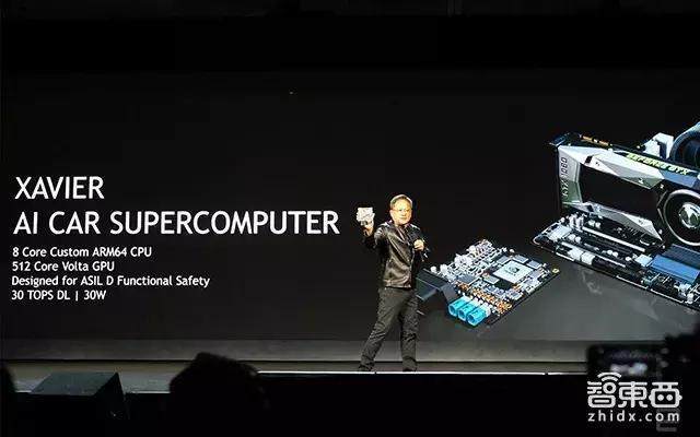 當(dāng)然,英偉達對Drive PX 2駭人的功耗看得很清楚。Drive PX 2之后,英偉達立馬推出了新一代基于Volt架構(gòu)GPU的SoC Xavier,單精度浮點運算性能達到20Tflops,是Drive PX 2 Autochauffeur的2.5倍,而功耗僅僅為30W。Xavier開了掛一般的強悍性能使它可以支持L4-L5的自動駕駛運算需求,同時低功耗和較小的體積又能夠適應(yīng)車輛需求。