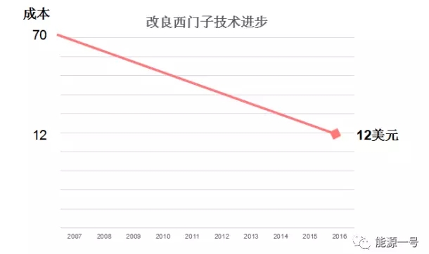 在節(jié)能環(huán)保方面,多晶硅生產(chǎn)過程中的綜合電耗,由2007年的350千瓦時(shí)降至2016年的60千瓦時(shí);還原電耗也由180千瓦時(shí)降至42千瓦時(shí)左右。改良西門子法的多晶硅制造成本也從2007年的70美元/公斤跌至12美元/公斤,甚至10美元以下,下降幅度高達(dá)70%以上。
