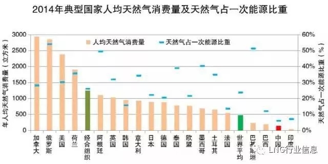 ? 2014年,中國人均天然氣消費(fèi)量135立方米,天然氣占一次能源消費(fèi)總量的比重約為6.0%;而全球人均消費(fèi)水平分別為467立方米和23.7%。