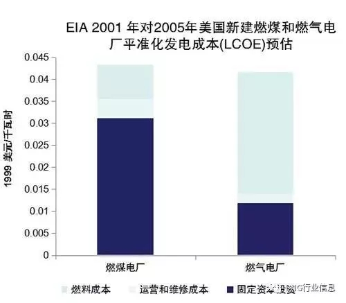? 美國:2001年,天然氣價(jià)格遠(yuǎn)高于煤炭價(jià)格,但燃?xì)怆姀S固定資本投資不到燃煤電廠的一半,且燃?xì)怆姀S建設(shè)時(shí)間短,運(yùn)維成本也很低,燃?xì)獍l(fā)電綜合成本低于燃煤發(fā)電。
