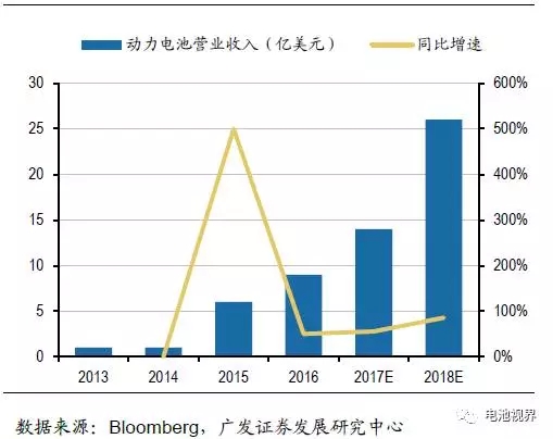 松下電器產(chǎn)業(yè)株式會社創(chuàng)建于1918年,于1994年開始研發(fā)可充電鋰離子電池。1998年松下開始量產(chǎn)筆記本電腦專用的圓柱形鋰離子電池,并建成了業(yè)內(nèi)領(lǐng)先的鋰離子電池生產(chǎn)線。2008年11月,松下宣布與三洋電機(jī)合并,一躍成為全球最大的鋰電池供應(yīng)商。隨著新能源汽車的興起,松下動力電池業(yè)務(wù)營業(yè)收入快速增長,2016年達(dá)18億美元,同比增速約為50%,2016年動力電池出貨量約為9.8GWh,同比增速56%。