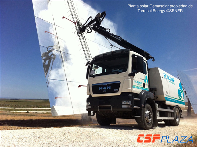在國際范圍內(nèi),針對采用平面反射鏡的塔式和菲涅爾電站來說,很多項目方選擇采用小型自動清洗機器人進行清洗,這種小型機器人無需人工駕駛,可沿鏡面自動運動進行清洗,位于西班牙裝機20MW的Gemasolar熔鹽塔式光熱電站就采用了由Sener設計的小型機器人來清洗鏡面(詳情見下列視頻)。