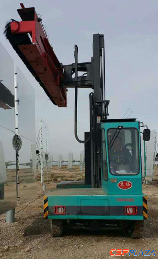 主營叉車的鎮(zhèn)江蘇福機械有限公司通過持續(xù)的研發(fā)投入,成功研制出針對塔式平面反射鏡的太陽能定日鏡專用清洗車,目前已在國內(nèi)部分項目上試用,效果良好。